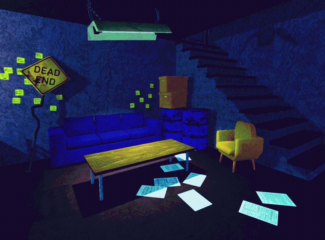 as mentioned above, i've learned the hard way that as a solo developer who is a full-time student, i cannot do everything here myself, which is why i've been using free CC attribution models off sketchfab and the like and at most retexturing them to fit my visual theme. what this effectively means is that i have slapped halftones over them! there are a few select models i've made from scratch, but a good chunk of them have been borrowed from outside sources. to everyone releasing their models to game developers, i will forever be grateful to you. like, i might actually start crying. you've saved solo developers all over the world and i love you