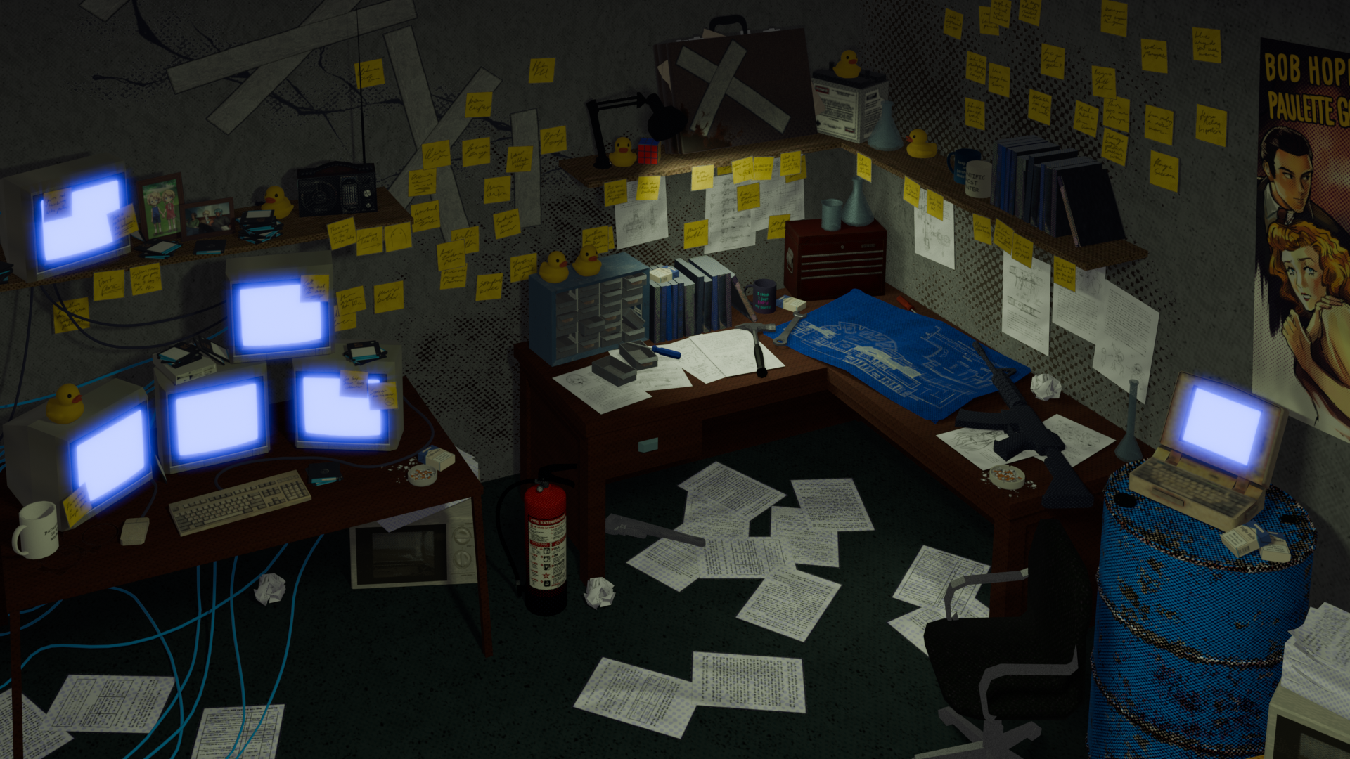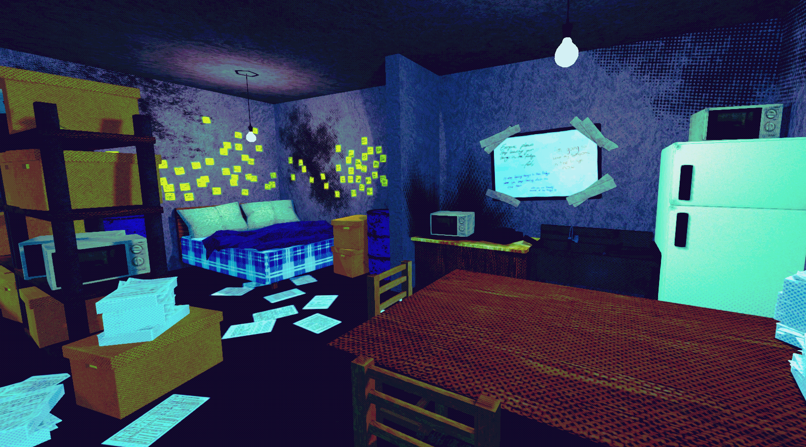 this area is the one i've spent the most time, effort and meshes on! no, the sticky notes are not separate meshes, thanks for asking! i've been sending my friends near daily screenshots of this area for a month now, and i don't think they even notice much of a difference with the screenshots i send them at this point!